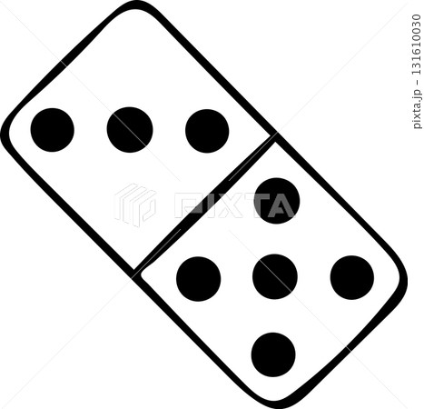 Simple black and white icon set as a doodle: a single domino piece in sketch style. Minimalist illustration of game bone with dots for traditional gaming and strategy themes