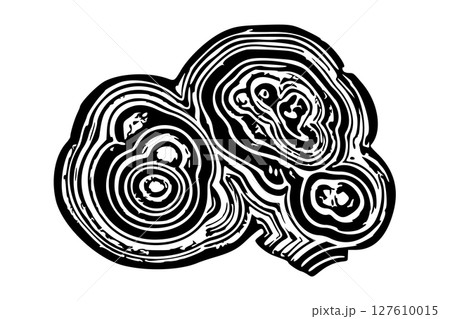 Abstract Black and White Geode Slice Illustration Showing Concentric Circular Layers