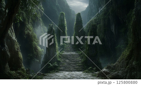 Ancient Stone Steps Jungle Mysterious Path Nature Art Old Dark Moss Rocks Green
