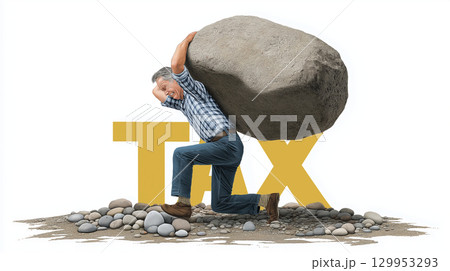 Man carrying huge rock on back struggling with tax burden, concept of financial pressure and stress