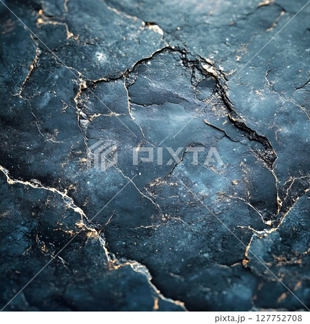 Dark Blue Texture with Golden Cracks Mimicking Broken Stone. Generative AI