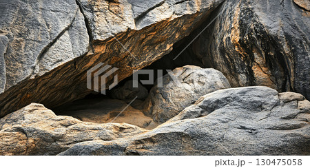 A detailed close up of an ancient fossil embedded in a rugged rock formation, showcasing intricate patterns and textures that hint at its prehistoric origins
