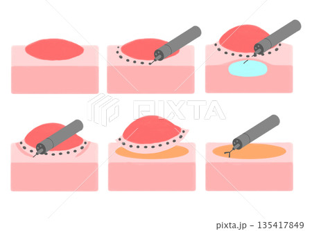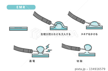 内視鏡的粘膜切除術(EMR)の手順・図解イラスト