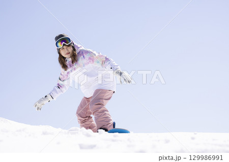 スノボを楽しむかわいい女性