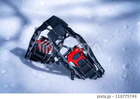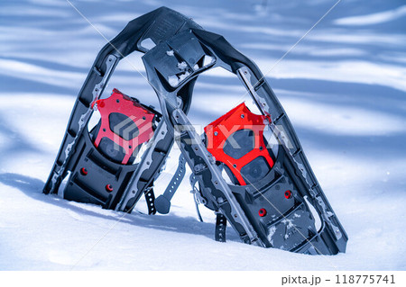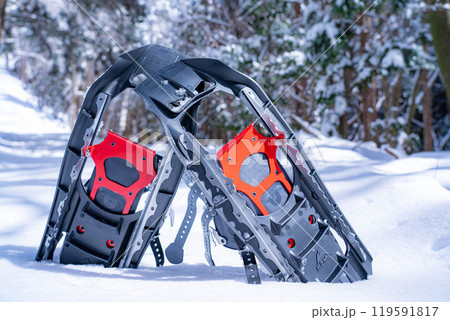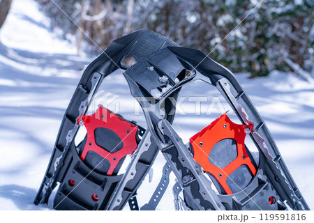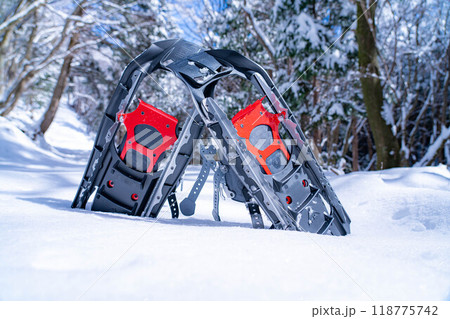 【冬素材】雪上のスノーシュー【長野県】