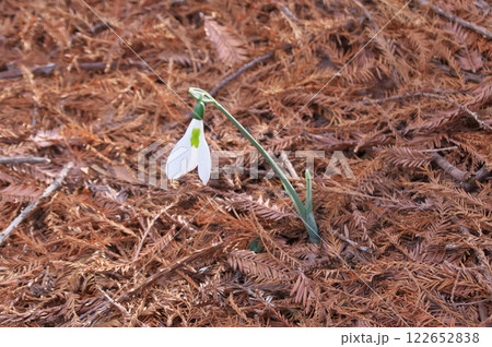 春を告げる花 ヒガンバナ科の球根植物スノードロップの白い花