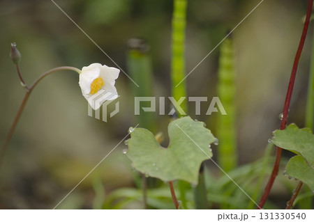 自然 植物 シラユキゲシ、四月頃フキに似た葉の間に白いきれいな花が咲きます①