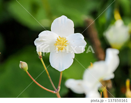 春の強い日差しを受けて美しく咲くシラユキゲシ(白雪芥子)の花(自然光+マクロ接写写真)