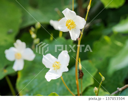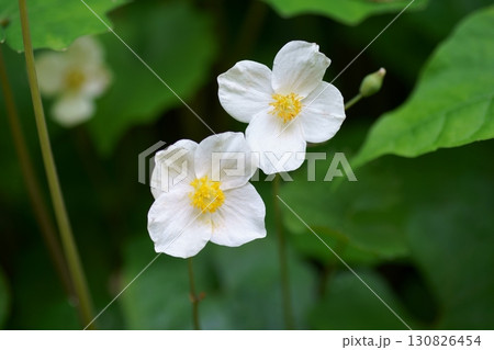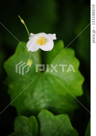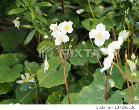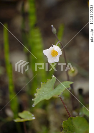 自然 植物 シラユキゲシ、四月頃フキに似た葉の間に白いきれいな花が咲きます②