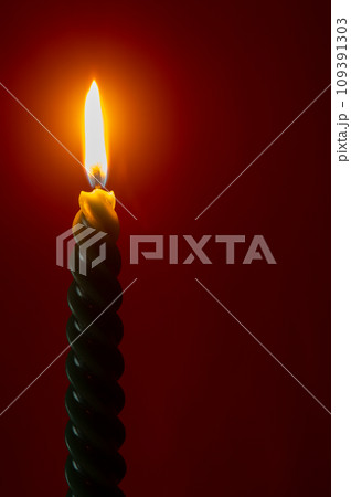 赤いキャンドル 灯りのともったロウソク スパイラルキャンドル