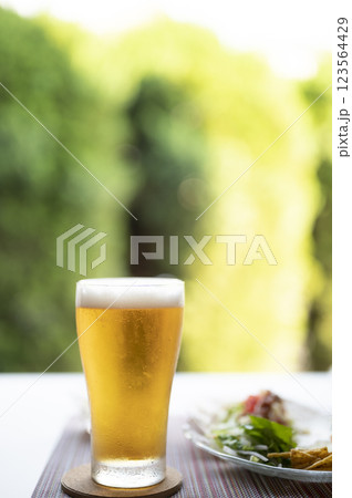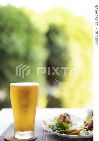 真夏に美味しい生ビールとタコス