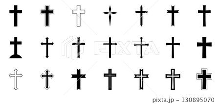 十字架 アイコン シンプル ベクター セット 黒 シルエット