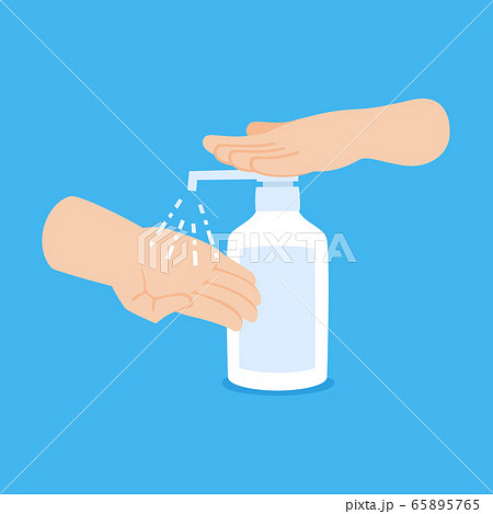 スプレータイプの除菌用アルコールで手を消毒している男性のイラスト。