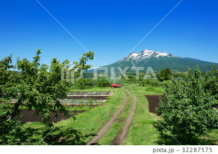 りんご園からのぞむ津軽富士