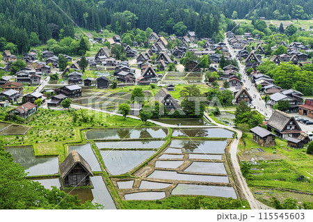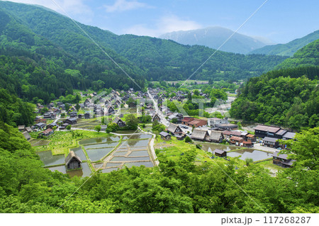 岐阜県 白川郷合掌造り集落 城跡展望台からの風景 世界遺産