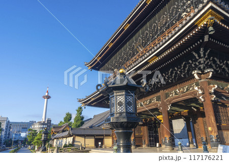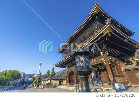京都 東本願寺 蓮華の噴水に映る御影堂門