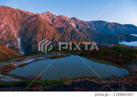 秋の唐松岳登山:夜明けの八方池と白馬三山
