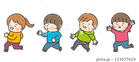 笑顔で走る四人の子供たち