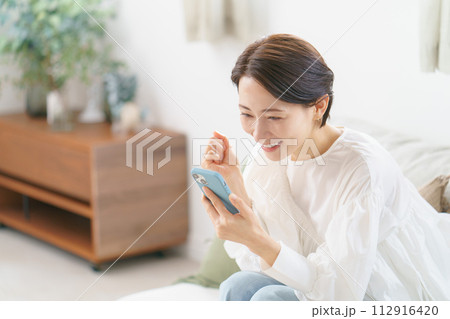 スマホを見ながらガッツポーズするミドルエイジ男性