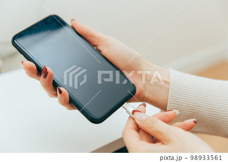スマートフォンを充電するシーン クローズアップ