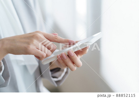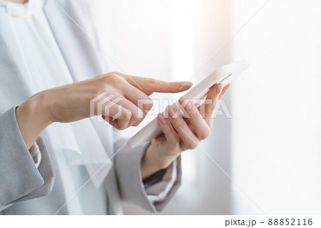 スマートフォンを操作する女性の手元