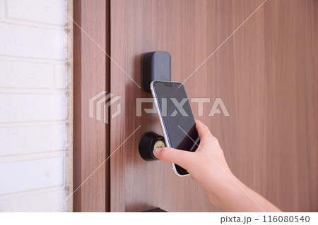 スマートフォンで鍵をかける写真