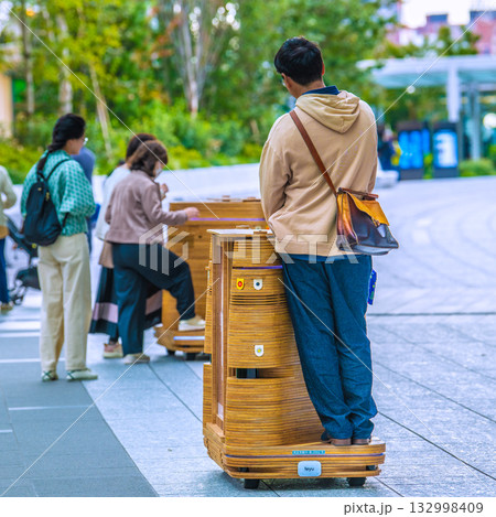 日本の東京都市景観 高輪ゲートウェイ駅前の高輪ゲートウェイシティの自動走行モビリティなどを望む