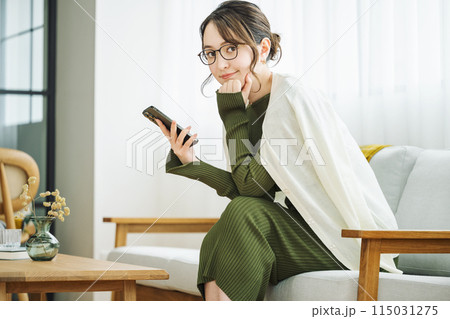 シニア女性 ミドル男性 親子 母 息子 スマホ