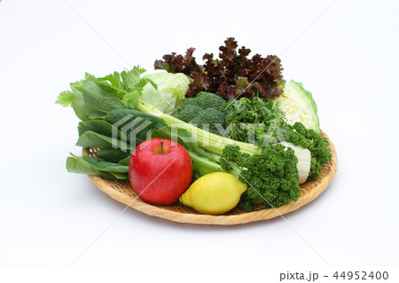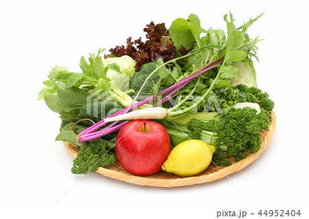 緑黄色野菜の盛り合わせ、コレステロール低下作用のあるあぶらな科、グリーンスムージー材料、青汁材料
