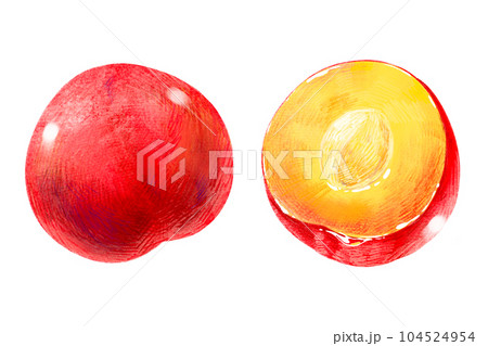 手描きフルーツ イラスト すもも(スモモ、李)半分 種あり 2点セット