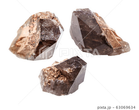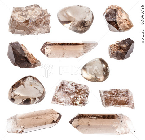 set of smoky quartz morion crystals isolated
