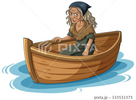 Wooden Rowboat Vector Illustration with Outline and Color Versions