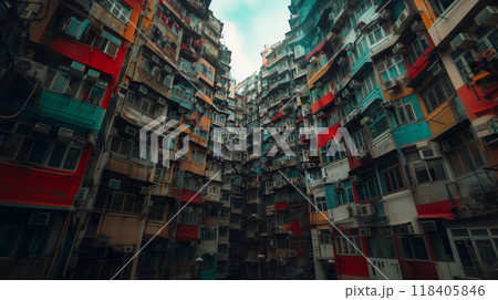 Overcrowded residential building in Hong Kong