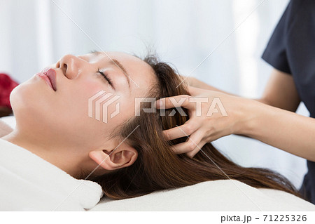 仰向けで目を閉じる美しい大人の女性 お昼寝や睡眠イメージ