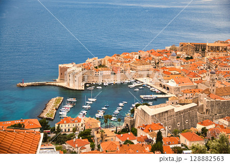 クロアチアのドブロブニクの旧市街とアドリア海