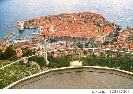 ヨーロッパ、クロアチアのスルジ山頂付近の展望台から見たドゥブロヴニクの風景
