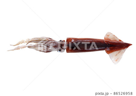 新鮮なスルメイカ、するめいか、鯣烏賊。やや小振りな国産のスルメイカです。未加熱、未調理。