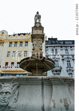 スロバキア共和国 首都ブラチスラヴァ フラヴネー広場 ローランド噴水