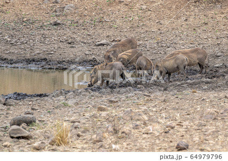 warthog at drinking pool in kruger park south