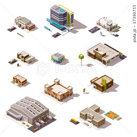 Vector isometric buildings set