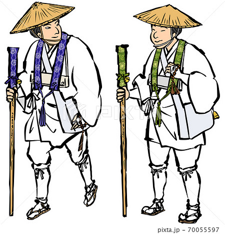 和風 お遍路さん 男2人 輪袈裟模様なし