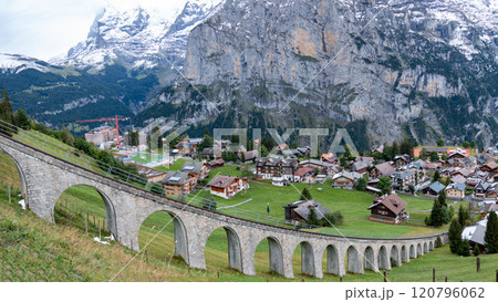 アンメルトフーベルのトレッキングの風景 ミューレンの村を望む ラウターブルンネン スイス