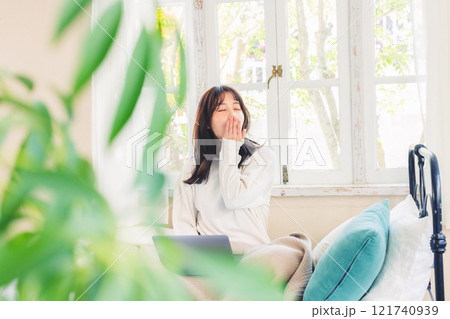 部屋でくつろぐ主婦・女性
