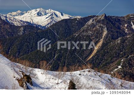残雪の北アルプス・合戦尾根上部から見る餓鬼岳・鹿島槍ヶ岳