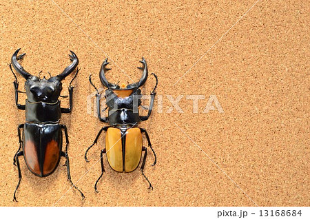 コーカサスオオカブトとセアカフタマタクワガタ コルク背景