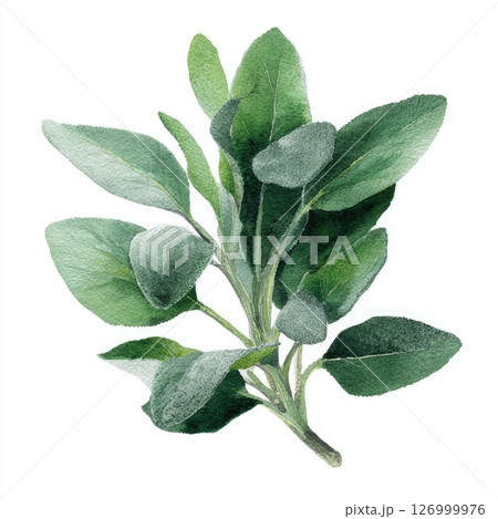Set of fresh herb, green sage in watercolor style isolated on a transparent background.