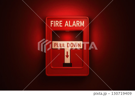 Emergency fire alarm button with glowing red light and bold warning signal, safety precaution concept with high detail and minimal background for alert situations