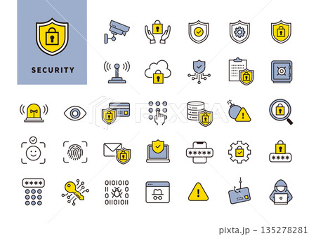 サイバーセキュリティのアイコンイラストセット EPS版は線の太さ等編集可能