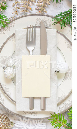 New Year's festive table setting, cutlery, decorations, New Year's decor, Christmas serving