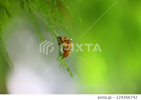 木の葉に残されたセミの抜け殻